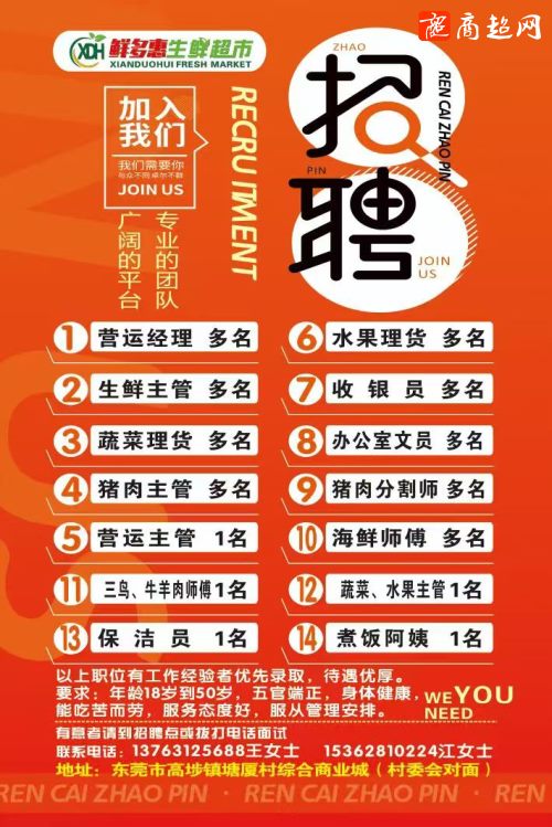 东莞市高埗镇鲜多惠生鲜超市招聘中!
