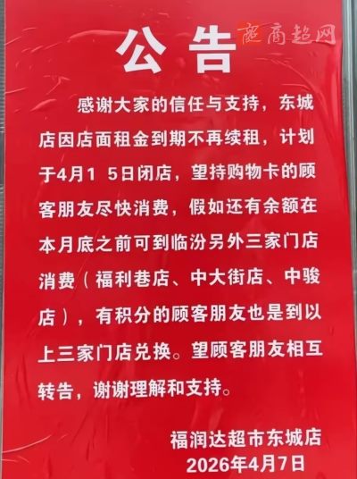福润达超市东城店4月15日闭店!