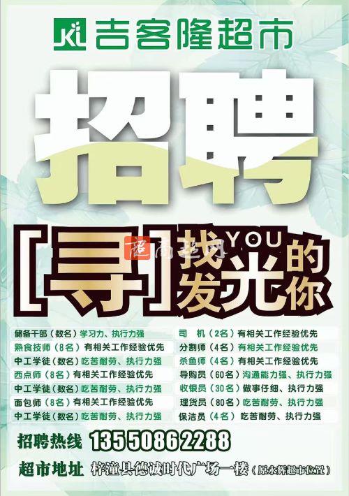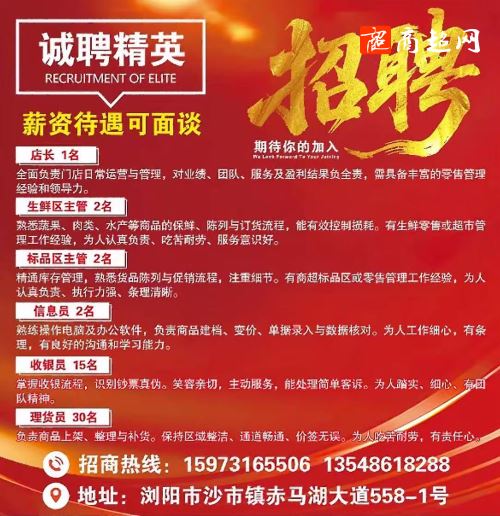 钜惠云仓仓储超市现招聘店长数名,要求有3—5年以上店长管理经验,有独立的运营管理思维,能严格执行公司各项指标,有管理大店、招商能力者优先。另招生鲜主管三名,标品主管三名联系电话:杨总13947212815石总13994014633