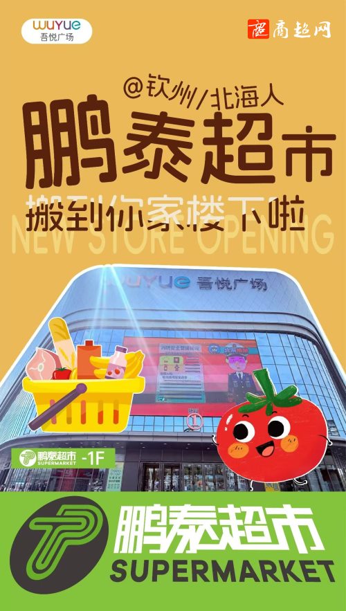 吾悦广场官宣鹏泰超市进驻钦州/北海吾悦广场!