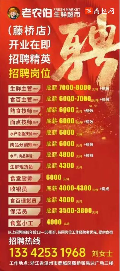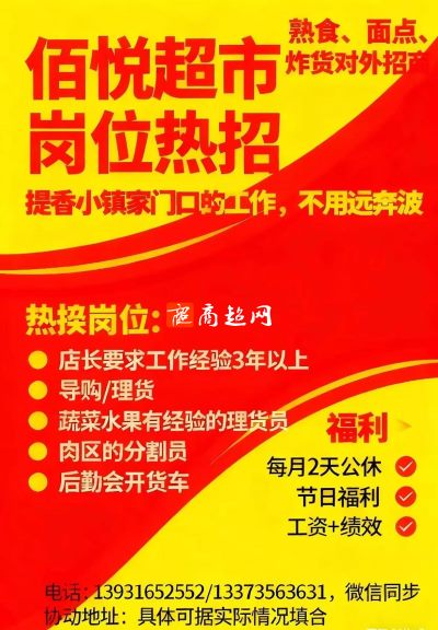 山东省滕州超市招聘店长,要求:五年以上大型超市经验,有厨房深加工经验优先,待遇:工资8000左右,包食宿
