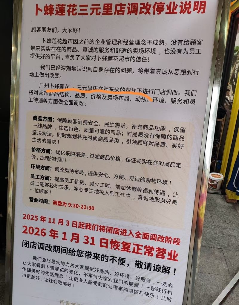 广州知名超市闭店调改,将于26年1月31日恢复营业