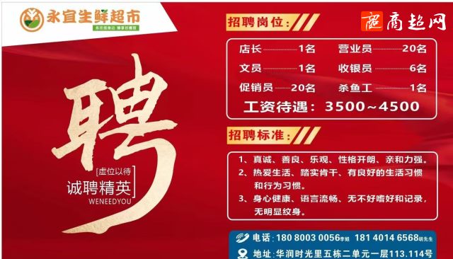 四川省成都市永宜生鲜超市招聘中!