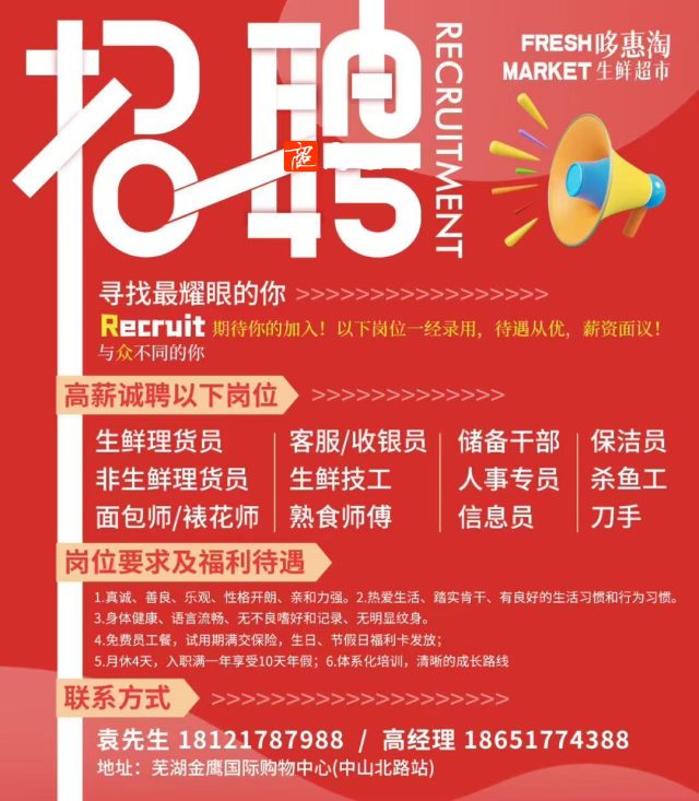 哆惠淘生鲜超市招聘以下职位!