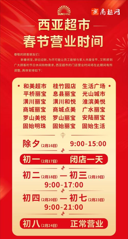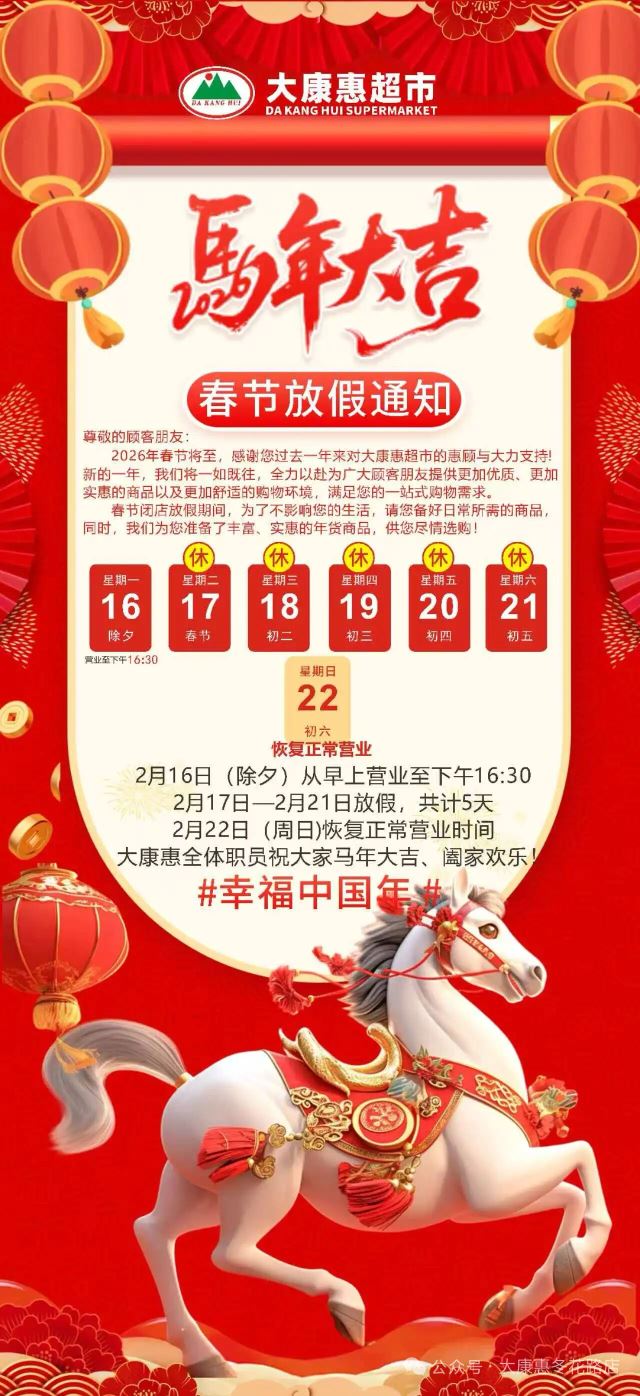 广西大康惠超市春节放假五天!