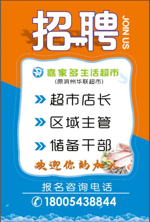 滨州华联连锁超市招聘店长2名,有意者电话联系