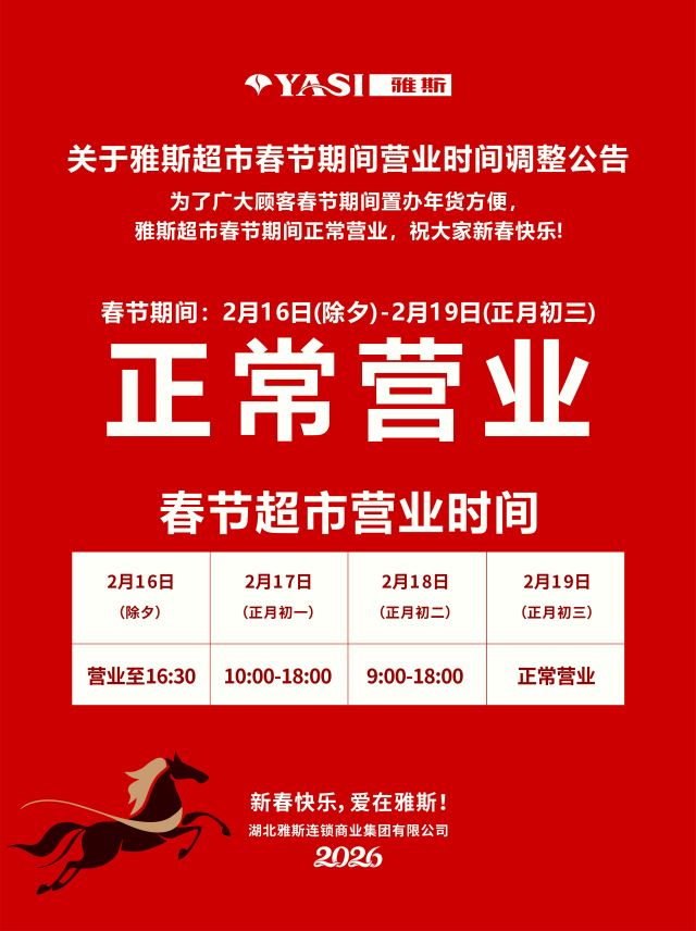 雅斯超市春节不放假,正常营业!