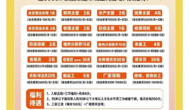 家里福超市招聘店长等职位!