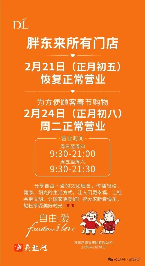 信誉楼超市春节放假六天!