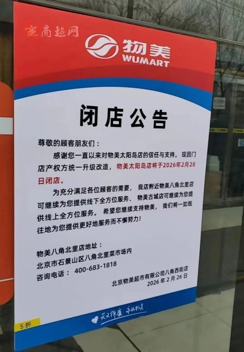 物美超市太阳岛店闭店公告!