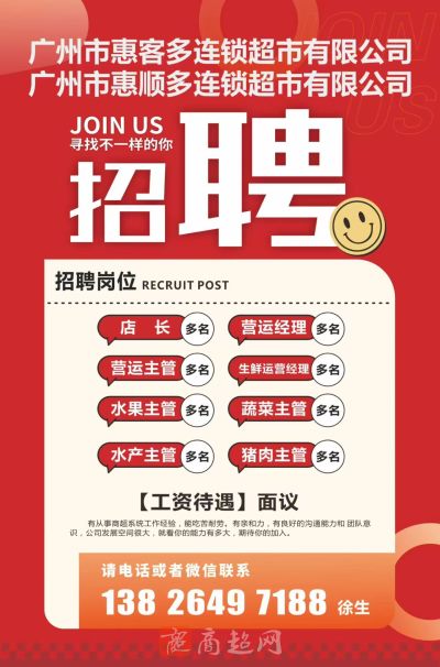 广州惠客多超市招聘店长、经理等职位!