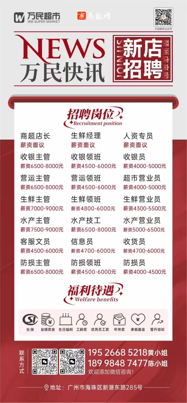 广州万民超市招聘店长/经理等职位!
