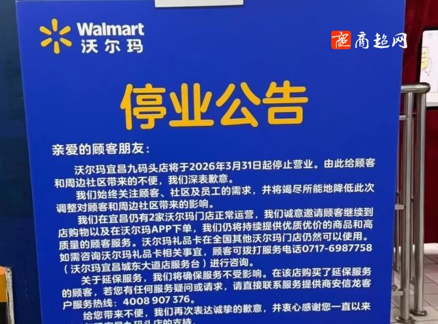 沃尔玛再关店,3月31日起停止营业!