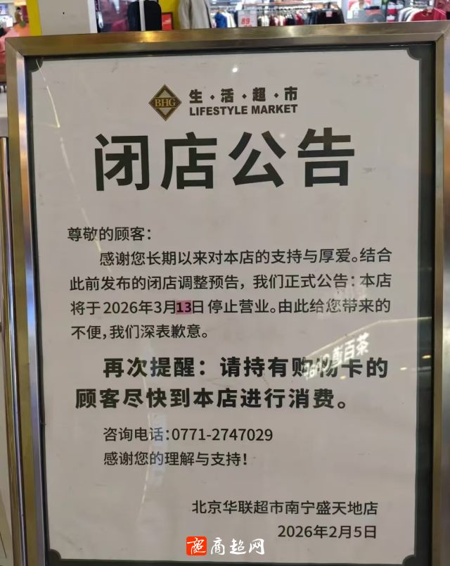 南宁最后一家北京华联3月13日正式停业!