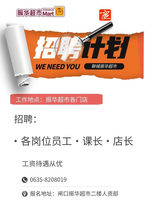 山东聊城市振华超市招聘店长!