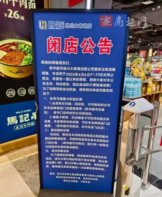 联华超市再关一店,将于4月6日正式停业!