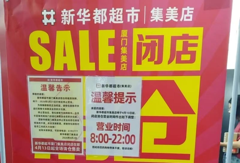 新华都超市厦门集美店将于5月31日停止营业!