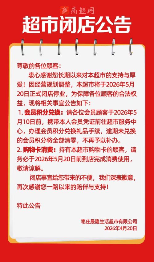万家宜生活超市将于4月24日正式闭店!