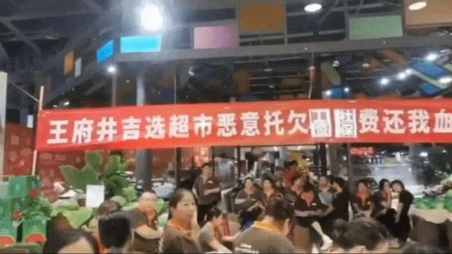 突发!知名超市员工拉横幅讨薪