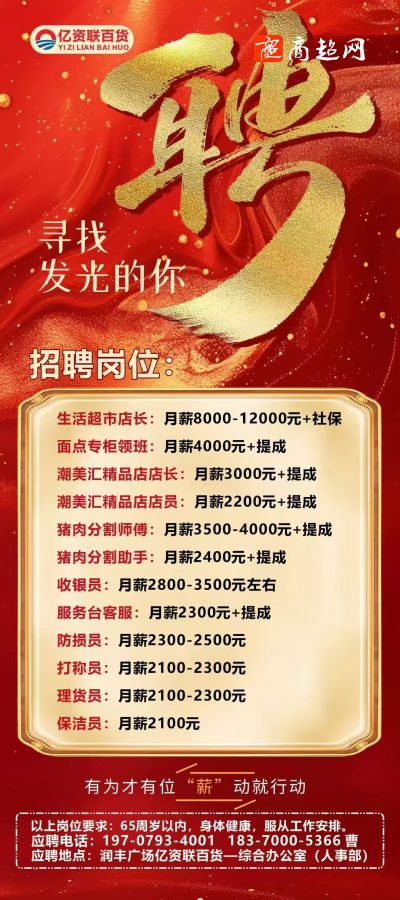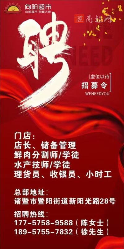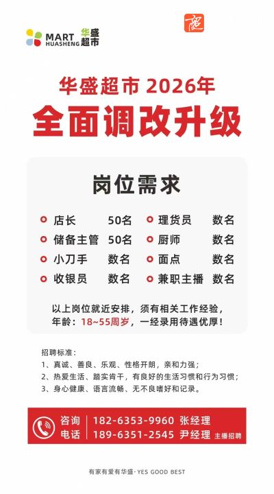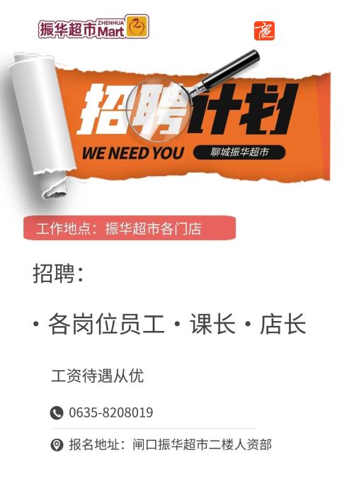 振华超市招聘店长等职位!