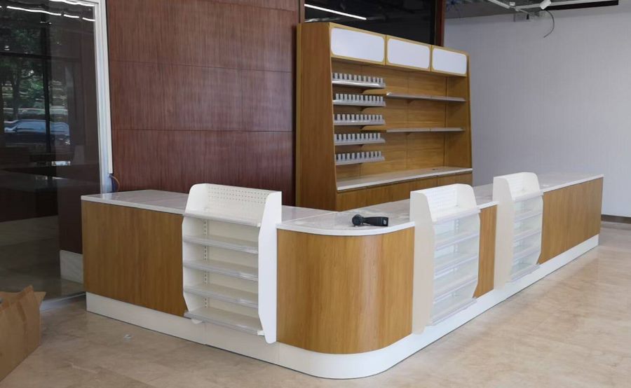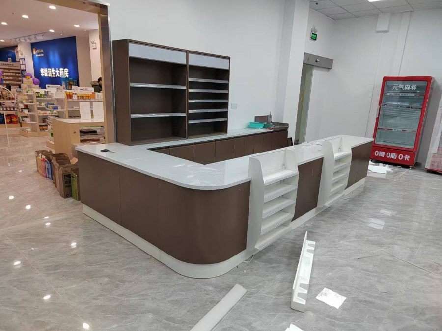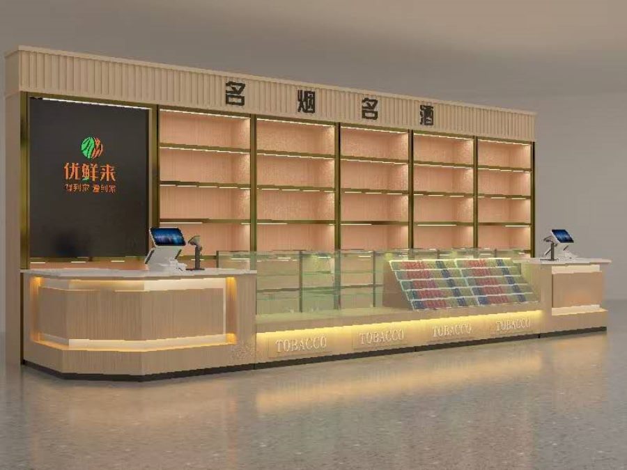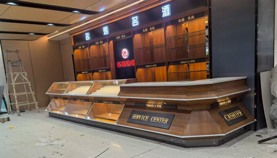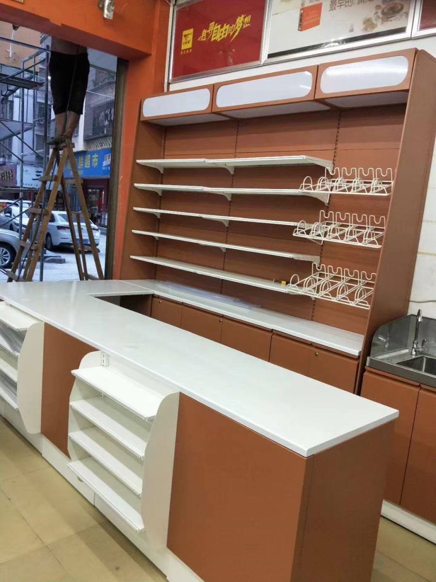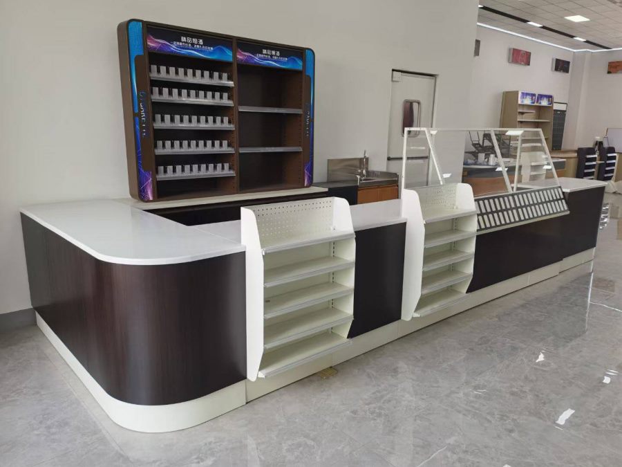 超市烟酒柜、服务台、实拍效果~顶邦兄弟货架设备有限公司