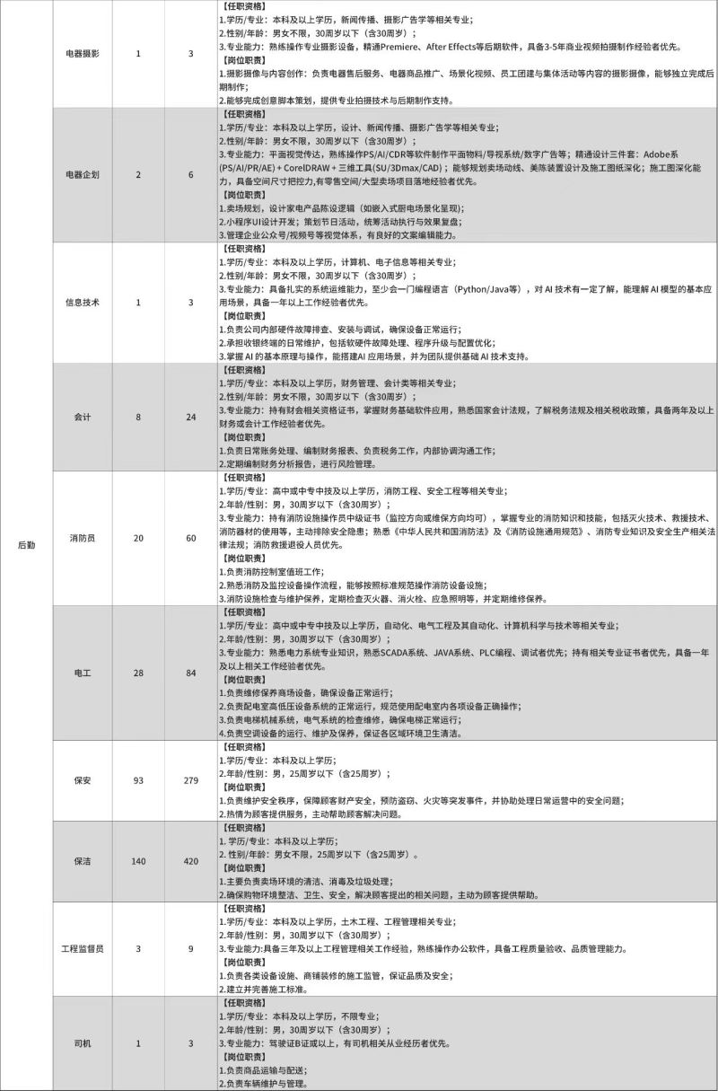 招聘基础标准:
