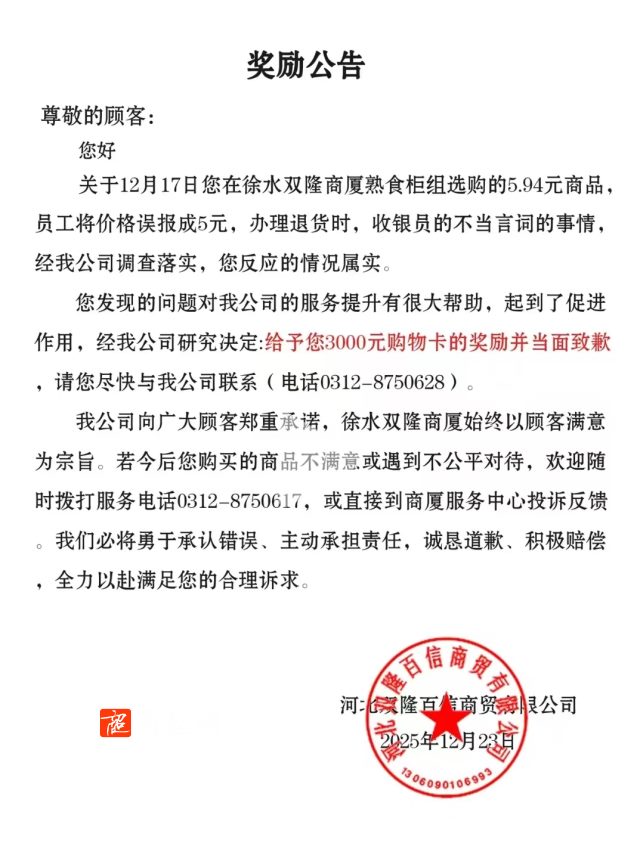 双隆超市:退货、致歉、赔偿3000元